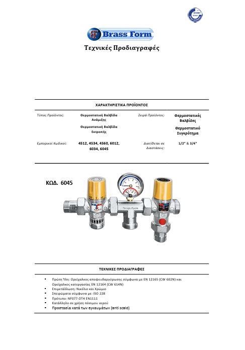 ΘΕΡΜΟΣΤΑΤΙΚΉ ΒΑΛΒΊΔΑ ΕΚΤΡΟΠΉΣ 4516